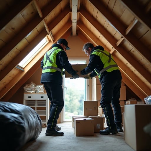 Loft access is often narrow and awkward. Pull-down ladders, tight hatches and limited headroom require careful handling. Our team approaches each loft clearance methodically, prioritising safety at every stage.
